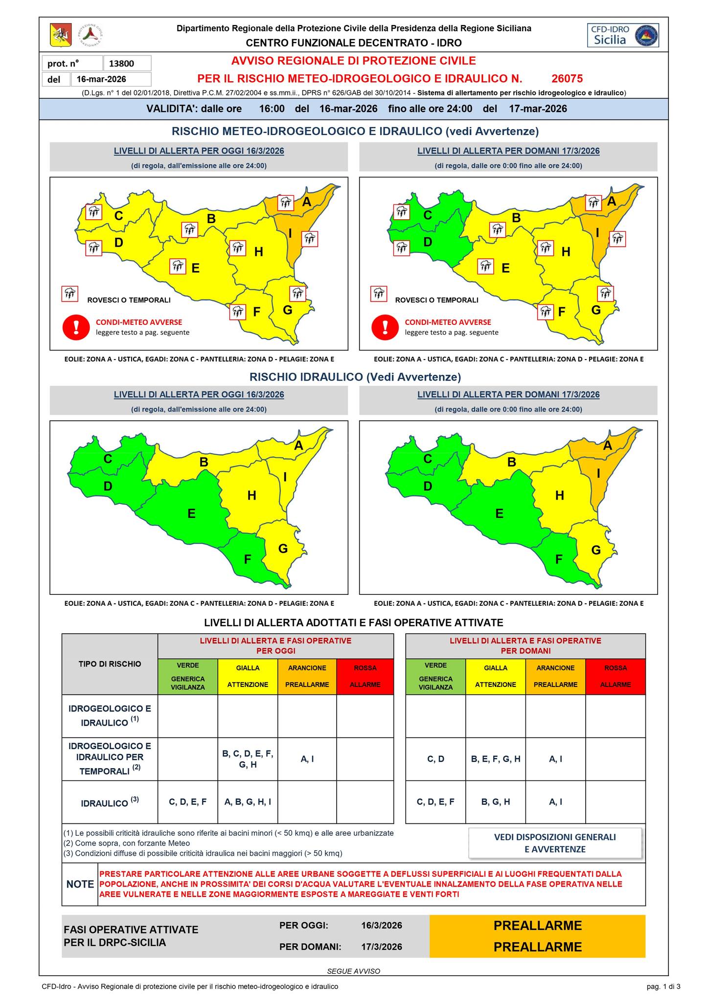Avviso allerta meteo per martedì 17 marzo 2026: sospensione attività didattiche
