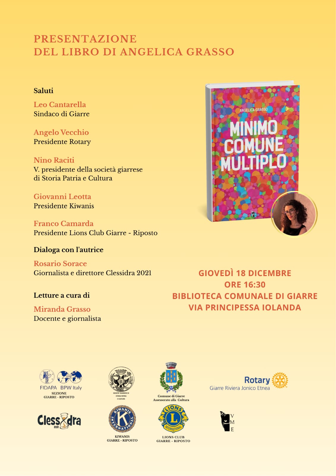 Presentazione del libro di Angelica Grasso: minimo comune multiplo. Biblioteca Comunale Giovedì 18 dicembre 2025 ore 16.30